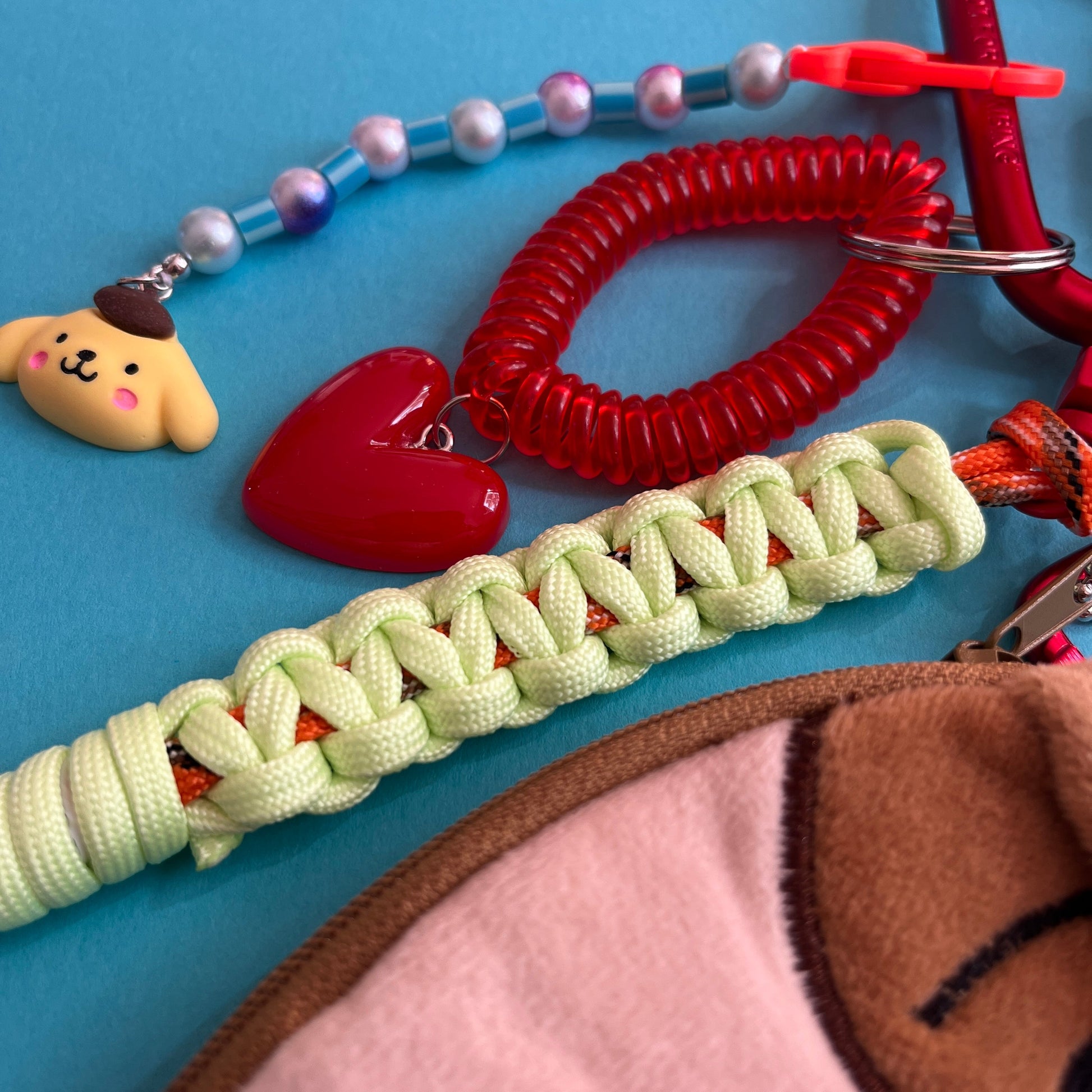 Eclectic bag charm keyring lots of fun elements attached. A soft retro vibe of cool primary colours to compliment any bag or outfit. Use together or separate into individual charms.