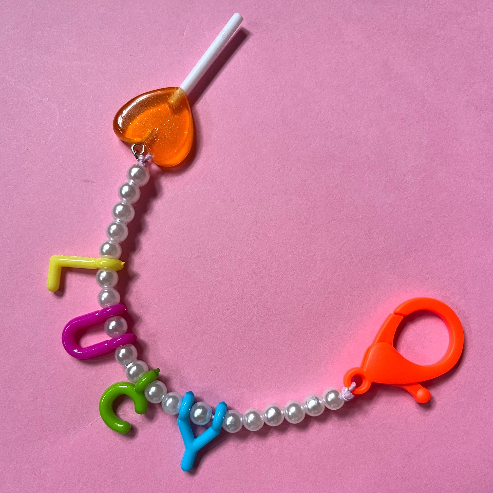 Eclectic bag charm keyring with carabiner and multi colour beads.Hand made in east London.